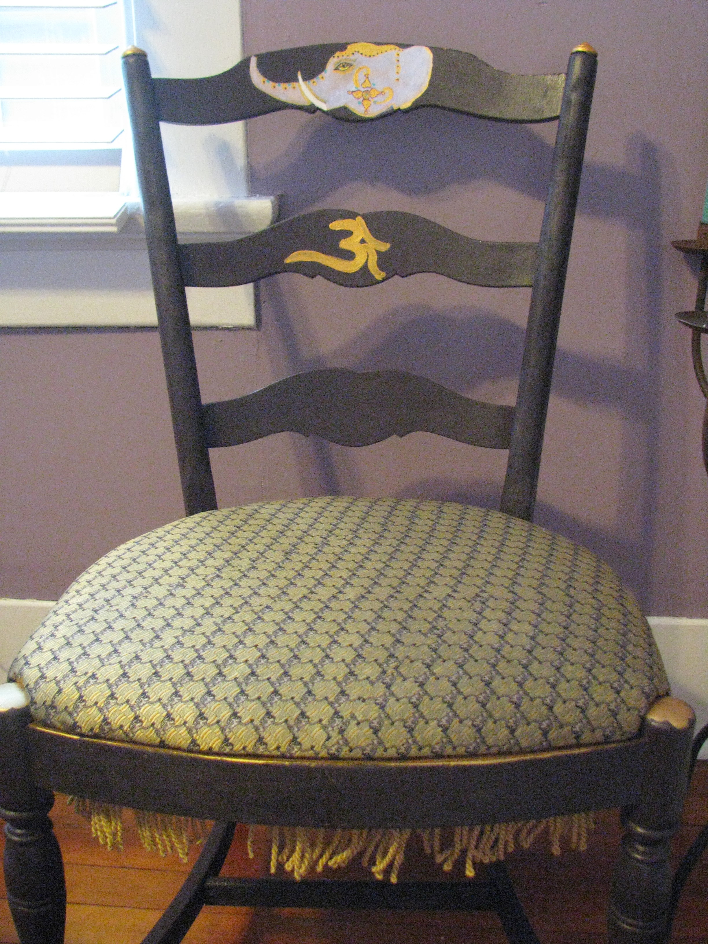 Today, I just finished embellishing some chairs. When I washed the 50 years of dinner guest magic off of them, the finish came off, too. I am thinking the previous owner, who has passed on, is thrilled with their reincarnation. I can still feel her lovely spirit when I look at them.