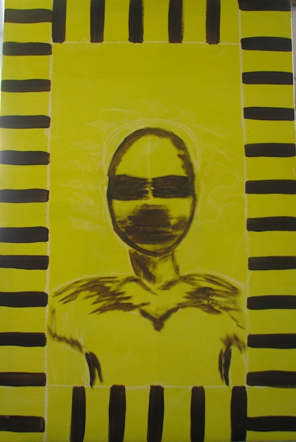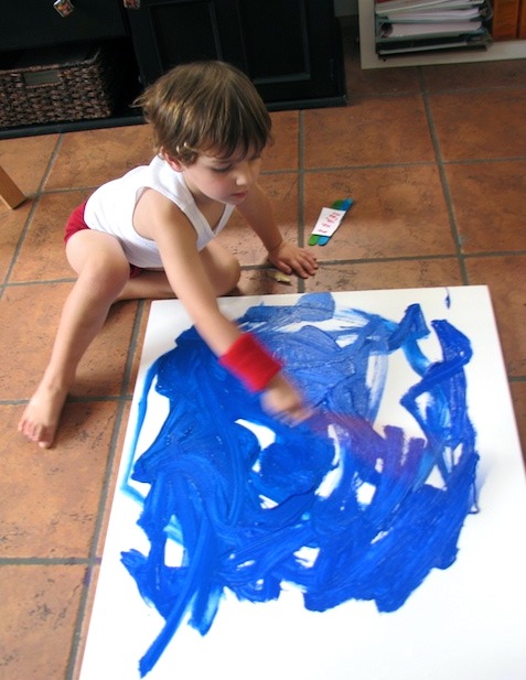 The background was red inside the border in the beginning, then I added white with a roller, then the teal with a brush.