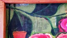 I picked up the frame at an estate sale. I stained it with the same color I used as the last coat on her face. It is Golden Quinacridone/ Nickel Azo Gold. After I applied the color on the frame, I rubbed some of it off with a damp paper towel.