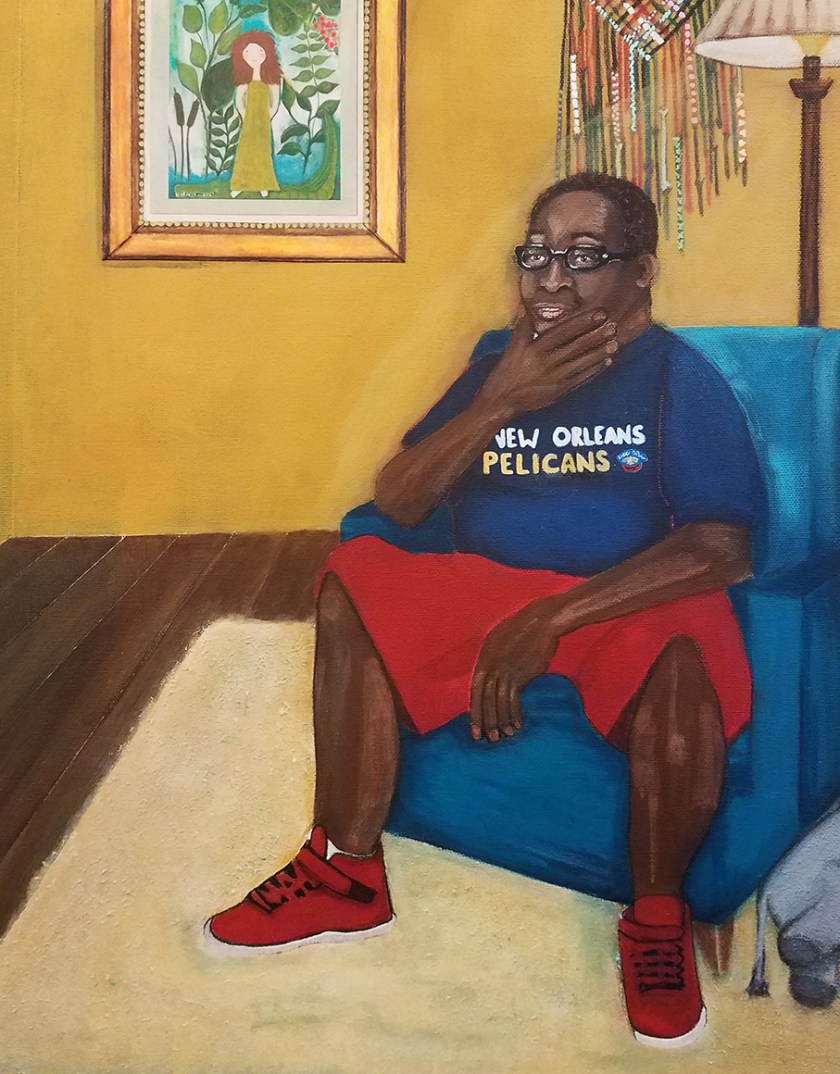 Pop is watching a New Orleans Pelicans game. I wanted to give him cigarettes or a beer, but this is a children’s book.