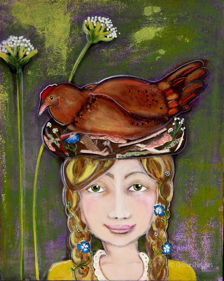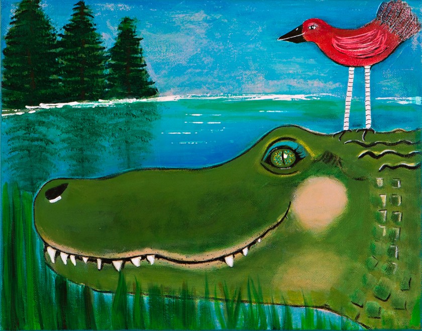 I am back to painting wall art. On the 18 x 36″ canvas right now is the beginning of a dog with a chicken on it’s head. One of my favorite themes is an animal riding on an animal. I don’t know why.