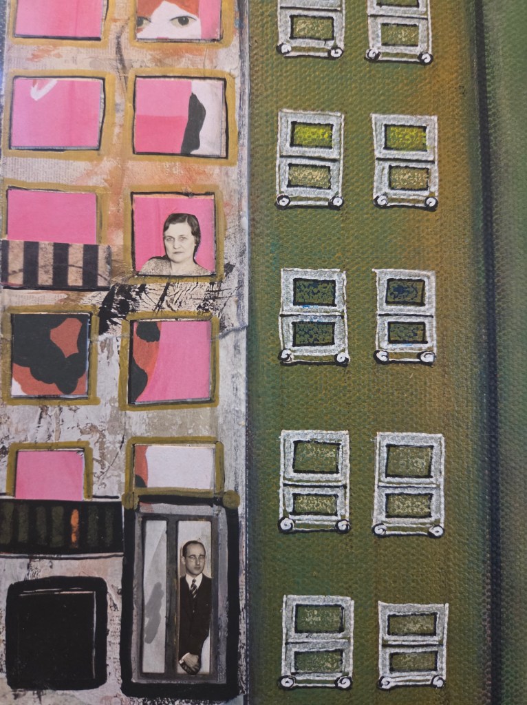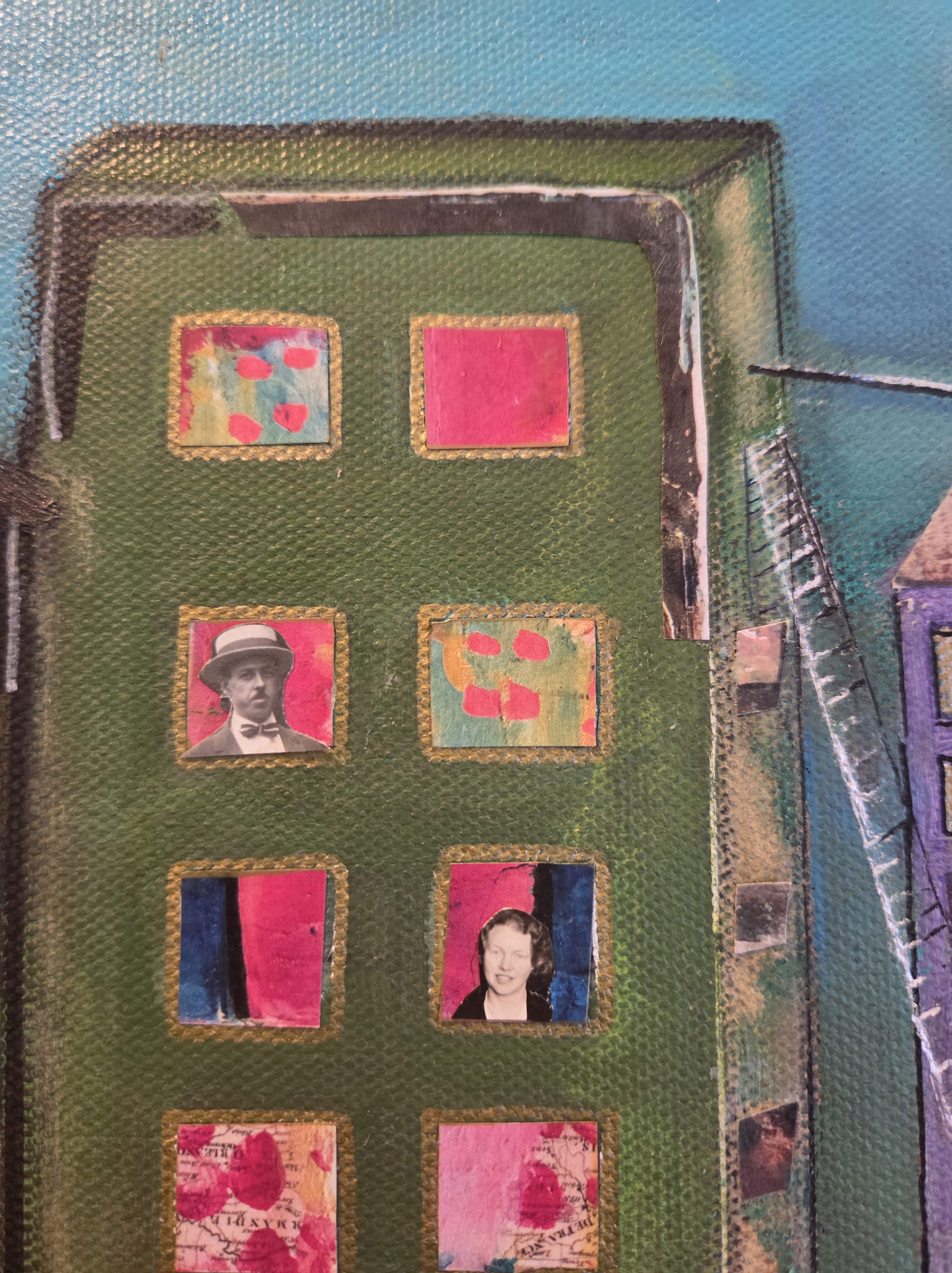 I have 2 of these frames. My mother got them at an estate sale or garage sale, maybe 40 years ago. I finally decided I could use them. Blick Art Materials had the perfect size board. I thought that would be best to use because it is hard wood, smooth and not cut crooked. Painting on wood is different than canvas. One of the pros of using wood is that I can write with a regular ink pen. One of the cons for me was that I wasn’t used to painting on wood. When I figured out to just lay the paint on instead of scrubbing several layers on, it worked like a dream. Kind of like a dream. It took quite a long time and I don’t think her face is exactly like I pictured. Her expression is for sure what I had in mind. She looks to me like she knows so much about life and just deals with it. Skeptical for good reason.
