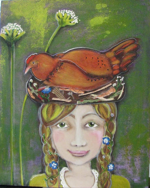 I used this technique on Shotgun Angel for the starry sky. Because this painting is on birch plywood, it ran onto the woman, especially her face. When I wiped the alcohol off of her face, it pulled all of the paint off, down to the original black gesso. (Sorry, no photo)